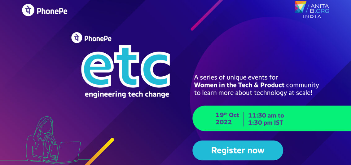 On Wednesday, October 19th, 2022, from 11:30 am – 1:30 pm IST, AnitaB.org India is organizing a virtual tech event ‘engineering tech change’ (etc) in collaboration with PhonePe. With focus on technology and engineering, the intention is to understand the core strings of database scaling, optimization, and efficiency.